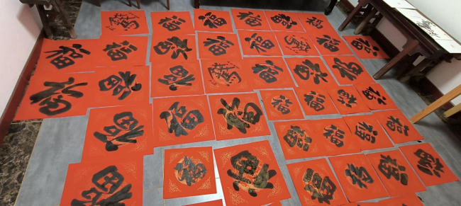 活动现场,大红纸整齐铺展,墨香阵阵萦绕。受邀的书法爱好者手握毛笔,凝神落笔,一撇一捺间,一个个笔力遒劲、寓意吉祥的福字跃然纸上。志愿者们在一旁细心整理、晾干写好的福字,为上户派送做好准备。随后,工作人员与志愿者兵分几路,挨家挨户走进北利群步行街的照相馆、眼镜店、服装店、茶叶店等沿街商户,将饱含美好期许的福字一一送到经营者手中。
