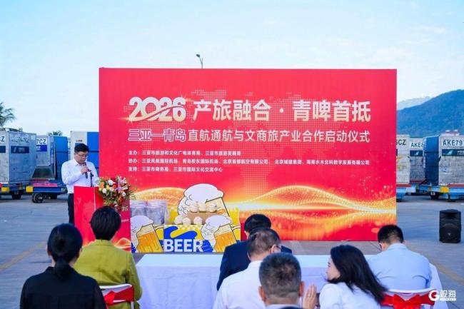 2月4日上午,“2026产旅融合・青啤首抵——三亚-青岛直航通航与文商旅产业合作启动仪式”在三亚凤凰国际机场举行。此次仪式的举办,标志着青岛与三亚正式打通“特色物资直航+文商旅产业联动”双向通道,为两地跨区域协同发展注入强劲新动能。