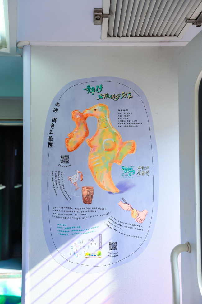 好客山东・齐鲁1号”文物研学主题旅游列车上,济南市博物馆多件文创产品进行了展销。