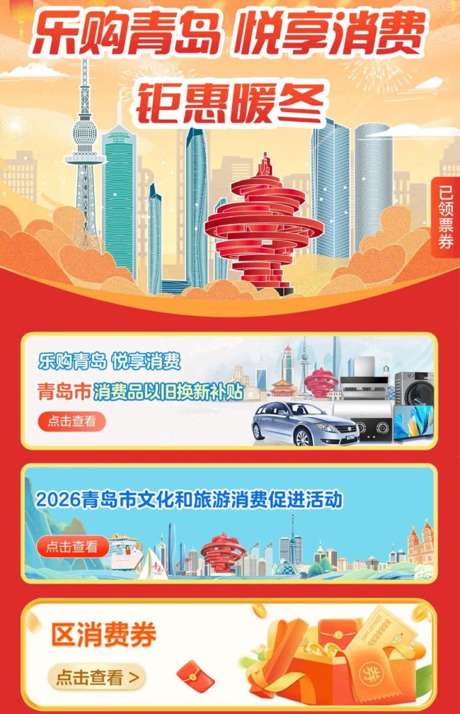 “山海迎春乐购青岛”启动,集中发放总额4600万元的消费券,涵盖零售、餐饮、文旅等多领域;