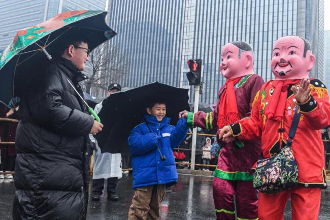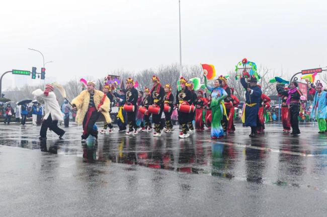 参加扮玩演出的王女士说:“虽然下着小雨,衣服也湿了,但能和大家一起把民俗表演送到市民身边,心里特别热乎。看到观众看得开心、拍得尽兴,我们再辛苦也值得!”
