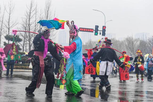 春雨挡不住市民的热情,沿路市民扶老携幼、驻足围观。高跷惊险、秧歌喜庆、锣鼓震天,每一支队伍走过,都引来市民阵阵喝彩,大家纷纷举起手机记录下这雨幕中热闹的瞬间。