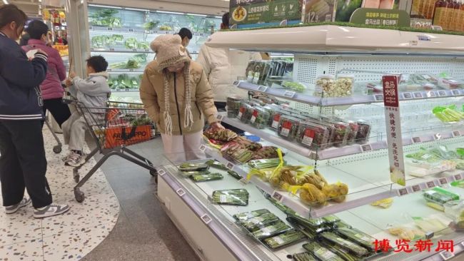 与传统菜市场的烟火气相呼应,盒马鲜生万达广场店内同样“春意盎然”。超市特别设置春菜专区,冷柜货架上整齐陈列着各式各样的时令春蔬。芦笋15.9元/350克、婆婆丁9.9元/150克、芦蒿13.9元/200克、红香椿7.99元/100克。正在选购的市民刘女士说:“超市里的春菜处理得比较干净,品质稳定,买得放心。今天买了芦笋和蚕豆,回家清炒一下,尝尝春天的味道。”