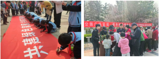 活动内容紧扣民生需求,重点开展三大板块服务:一是绿化养护咨询服务。园林技术人员现场答疑家庭养花、阳台绿化、苗木养护、病虫害防治等问题,发放养护手册,征集群众意见;深入社区指导“共建花园”建设,提供春季修剪、施肥、浇水等专业技术支持,提升社区绿化管护水平。二是绿色课堂知识普及。园林专家走进校园、社区,通过实物展示、互动问答普及市花市树、树木养护、春季绿化要点等知识,组织学生参与树木挂牌、种植体验等实践活动,厚植绿色理念。三是政策法规宣传宣讲。在公园、广场等场所,宣传《潍坊市城市绿化条例》《潍坊市城市公园广场管理办法》及生活垃圾分类等规定,引导市民自觉爱绿护绿,践行绿色生活方式。按照活动统一安排,市市政公用事业服务中心、市城管执法支队同时在主会场开展市政设施、公用事业、城管执法等业务宣传和便民服务活动。