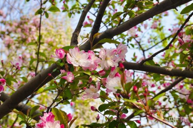 风拂海棠,粉白如云(央广网记者李舜摄)