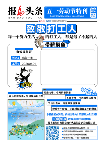 5月1日-5月5日,青岛日报社观海新闻专为都市打工人推出五一福利致敬打工人主题活动。活动联动青岛13处打卡景点的拍报机及3个新增点位的大头贴,打造解压式互动体验。让每一位辛苦忙碌的打工人,趁着五一假期休闲打卡,卸下日常工作的疲惫,解锁松弛感满分的假期生活。