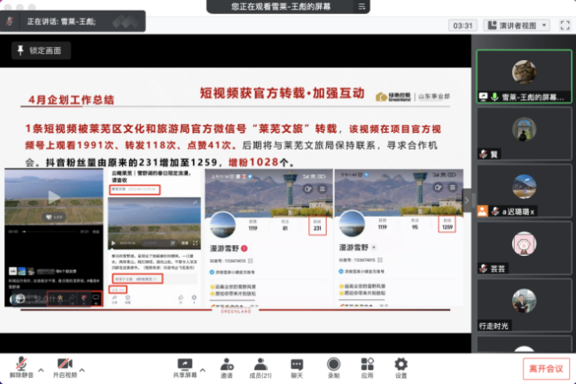 青岛企划经理庞刚和济南国博城项目总监宋其航、企划赵振星从抖音直播营销的团队组建、方案支持、方法技巧等方面进行分享,并针对自身、市场、账号运营等多方面进行透彻分析,为全面推开线上直播提供了宝贵的经验。