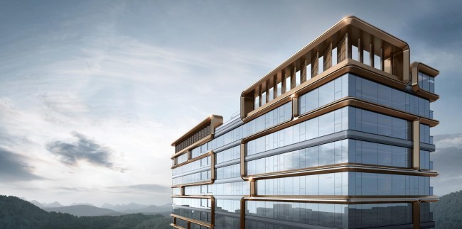 而这仅是项目约2.27万方双庭院立体园林的一部分,约2000㎡立体核心中庭仍在营造之中,未来将以“一门三进双院五颂”的景观格局,重构园区自然维度。