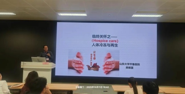 研讨会上,山东大学齐鲁医院麻醉科教授、山东省医学会麻醉分会名誉主任委员、山东省卫健委麻醉质量控制中心前主任类维富教授带来《临终关怀(安宁疗护)之人体冷冻与再生》的超前理念分享——他强调安宁疗护中的人文关怀及对生命尊严的关注,提出人体冷冻作为现有医疗技术的延伸,在给病人及家属一份希冀的同时,还可对低温生物医学研究及器官、遗体捐献事业的发展有积极助推意义。