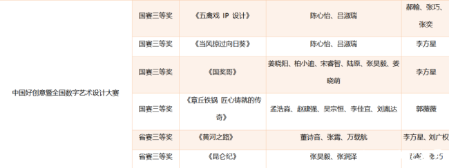 中国好创意暨全国数字艺术设计大赛是入选教育部中国高等教育学会发布的《全国普通高校大学生竞赛分析报告》的赛项,也是我国第一个以数字艺术、数字设计、数字创意、数字媒体及数字技术创新领域各专业为核心的综合类、大规模、跨学科、多专业、参与院校多、影响广泛的权威赛事。我校文化传播学院数媒教师团队在此次赛事中指导学生斩获国家级三等奖5项,省级三等奖2项。
