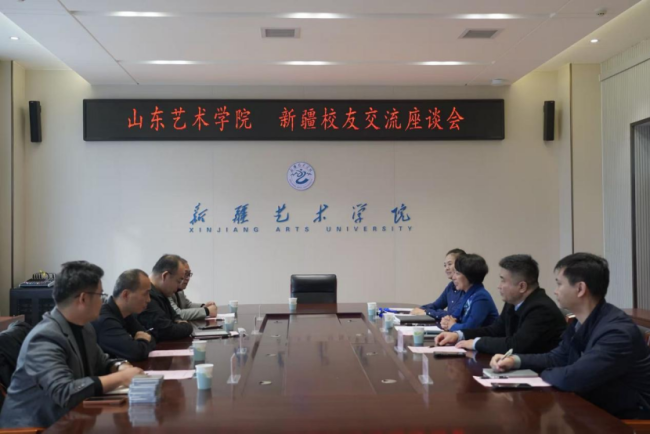 校友们在座谈中深情回顾了在山东艺术学院求学时的青春岁月,分享了在新疆工作的体会与成果。大家纷纷表示,母校的培养是他们成长进步的坚实根基,“闳约深美”的校训精神始终激励着他们在教育、创作、管理等岗位上不断前行。他们承诺,将继续发挥桥梁纽带作用,积极推动鲁疆两地艺术交流与校际合作,为文化润疆、民族团结和边疆艺术教育事业贡献山艺人的智慧与力量。