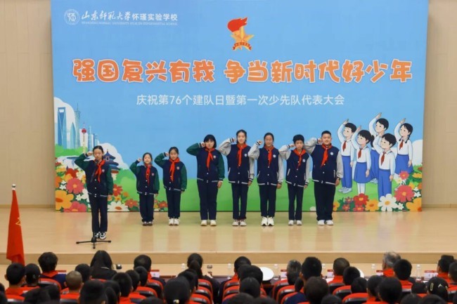 星星火炬引航程,红领巾飘扬映初心。10月12日下午,山东师范大学怀瑾实验学校校园里红旗招展、队歌嘹亮,隆重举行庆祝第76个建队日暨第一次少先队代表大会。