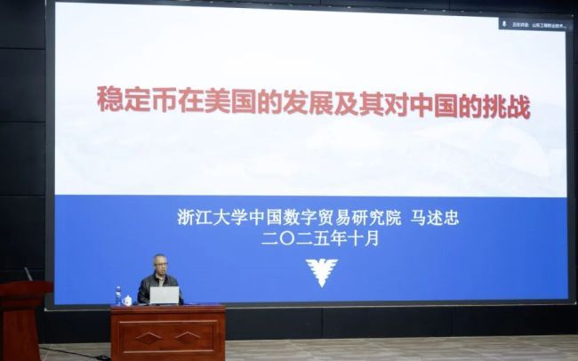主题报告环节,各位专家带来了内容丰富、见解独到的分享。马述忠教授以《稳定币在美国的发展及其对中国的挑战》为题,高屋建瓴地剖析了全球数字金融格局。