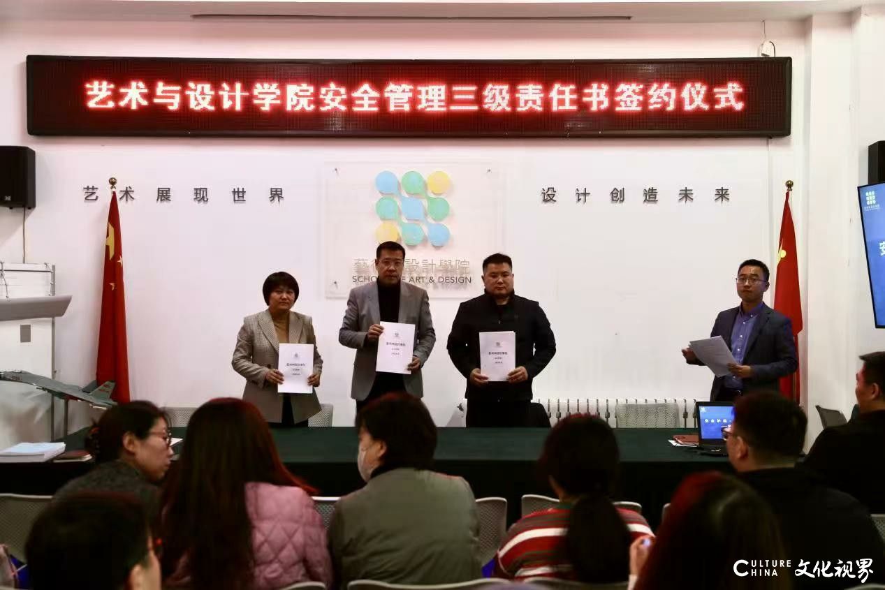 山东交通学院艺术与设计学院召开多次安全专题会议,研判安全风险,组织签订“艺术与设计学院三级安全管理责任书”,压实各级责任,形成“任务明晰、责任到岗”的管理格局。