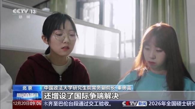 中国政法大学研究生院常务副院长秦奥蕾:“2026年我们研究生新增的招生计划的80%都投放到了专业学位,这些新增的专业学位以服务国家战略与社会经济发展需求为目标,比如数字经济、知识产权、国际事务,我们在法律专业学位还增设了国际争端解决、文化法学和社会治理法学等。”