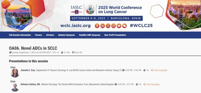 国际肺癌研究协会(IASLC)理事会2025-2027届主席、同济大学附属东方医院周彩存教授将于巴塞罗那当地时间9月7日下午在“小细胞肺癌ADC新药”专场进行口头报告。