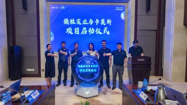 在多方代表充分交流的基础上,会议迎来最重要的议程——强胜实业与卡奥斯COSMOPlat数智化项目正式启动。强胜实业与卡奥斯COSMOPlat代表共同登台,按下启动装置。随着倒计时结束,项目正式宣告启动,标志着双方合作全面进入实施阶段,现场气氛热烈。