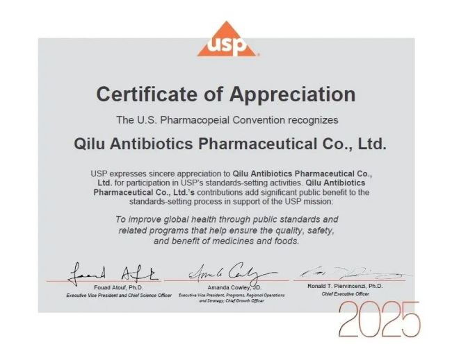 近日,齐鲁制药收到美国药典委员会(USP)的感谢信与证书,确认齐鲁制药头孢丙烯杂质D被采纳为USP标准品,这也是第12个被USP列为标准品的“齐鲁制造”。