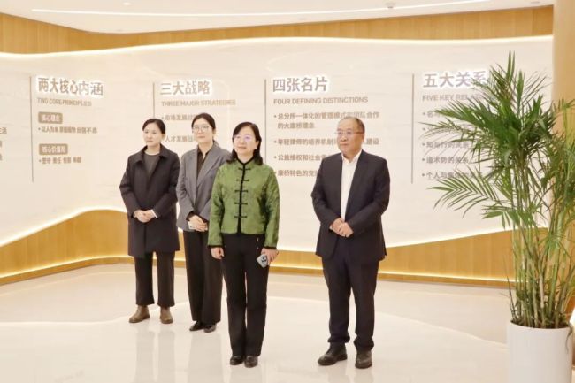毕惠岩专委一行首先在张巧良代表的陪同下参观了康桥的办公环境。参观过程中,张巧良代表介绍了康桥的一体化管理模式、文化理念、核心价值观、党建工作以及康桥在促进良法善治、承担社会责任等方面所开展的工作。