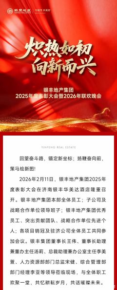 银丰地产集团2025年度表彰大会暨2026年联欢晚会昨日在济南银丰华美达酒店喜庆召开