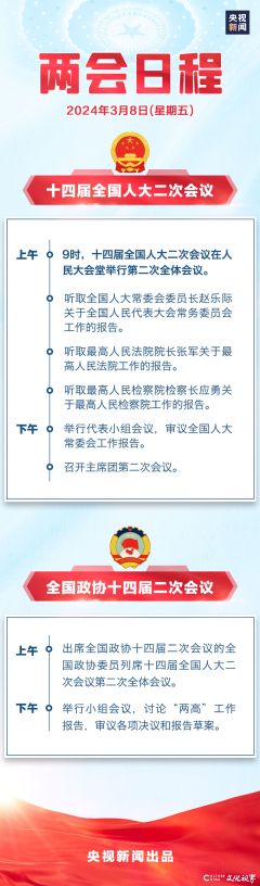 两会进行时 | 3月8日两会日程:听取全国人大常委会工作报告和“两高”工作报告