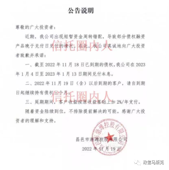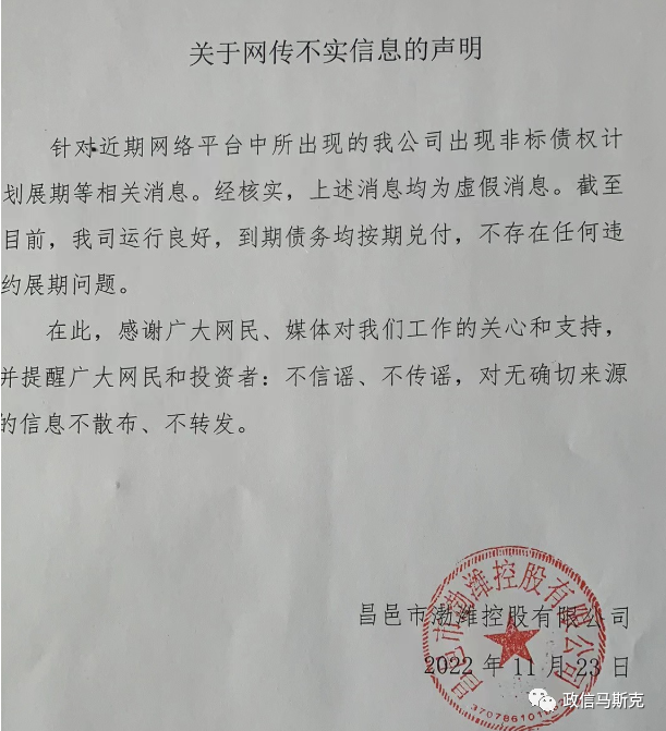 潍坊昌邑市渤潍控股计划展期三个月,渤潍控股:已兑付 中华网山东频道 2023-09-09 16:29:17 A+ A- 最新进展:已于11月25日完成兑付。(来源:政信马斯克) 责任编辑:金德锋 点击查看全文(剩余0%)