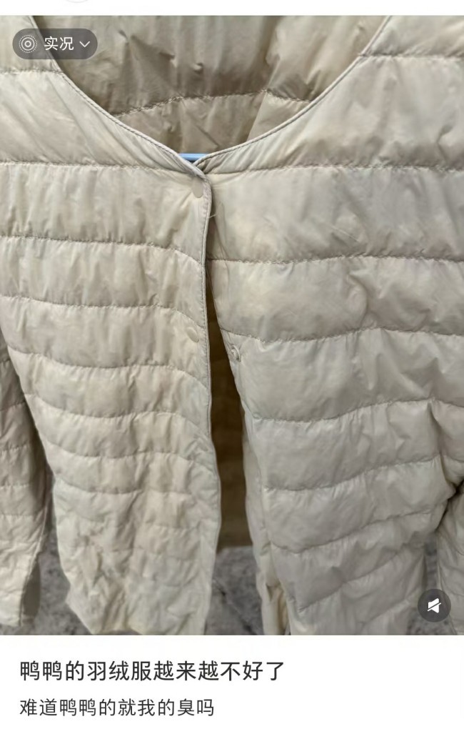 虽说羽绒服初期可能带点鸭绒天然的味道,但味道重到影响穿着,往往是清洗不彻底、绒子等级低或是存储不当的信号,这难免让消费者对品控打上问号。