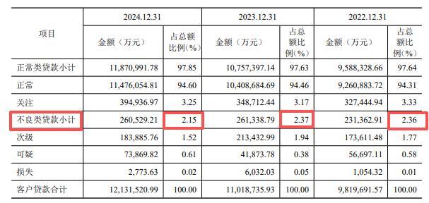 2024年年报披露的不良资产率