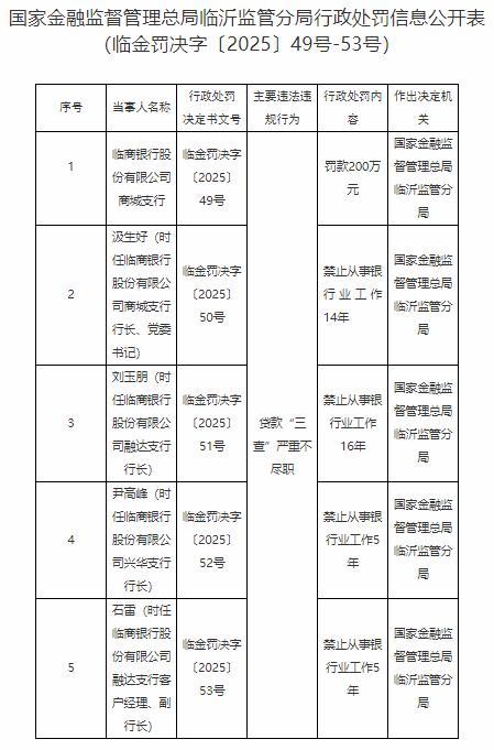 监管机构对临商银行的处罚指向明确而严厉。此次临商银行开年收到的一系列罚单,覆盖了从总行到支行的多个层级。
