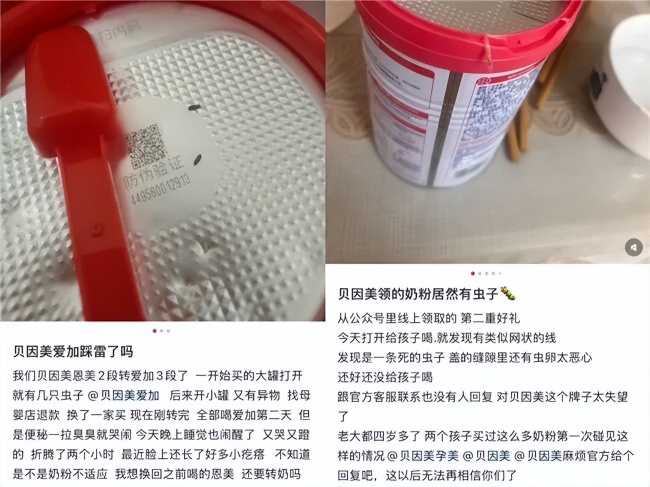 在小红书平台上,多位消费者指控贝因美奶粉有虫卵、和异物。甚至有消费者在贝因美婴幼儿奶粉中发现已死亡的米虫。