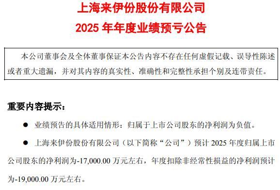 休闲零食巨头来伊份(603777.SH)近日发布2025年度预亏公告,将出现连续两年亏损,创下上市以来最差的业绩。