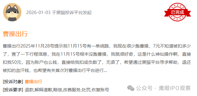 在黑猫投诉平台上,关于曹操出行的投诉更是涵盖司乘两端:乘客端集中反映价格虚高、司机危险驾驶平台不作为、司机不按规定路线行驶等问题;司机端则以平台乱扣费、不退还押金(保证金金额多为4000-6000元不等)为主要诉求。