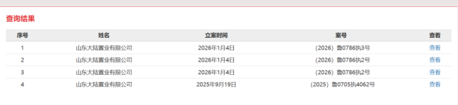 据上述资产评估报告披露,本次股权拍卖由山东昌邑农商银行与大陆置业、上佳建工、昌邑市润丰农业科技有限公司、昌邑市昌祺喷胶棉有限公司以及陈某、曹某等人的借款合同纠纷案引发。大陆置业目前已沦为被执行人,该公司2026年1月4日两次被昌邑市人民法院立案执行,被执行金额分别为4875万元、3680万元。
