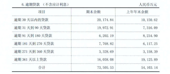 数据显示,截至2024年末,诸城农商银行的不良贷款余额为4.46亿元,不良贷款率为1.39%,较2023年同期均有所下降。但该行的逾期贷款和逾期贷款率却同时出现大幅上升,这与该行长期存在的粗放授信模式密切相关。同期,该行逾期贷款余额为7.35亿元,较2023年同期的5.41亿元增加1.94亿元,增幅约36%。逾期贷款率为2.30%,较2023年同期的1.79%上升0.51个百分点。