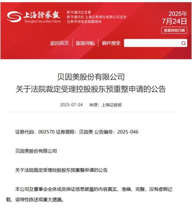 图片来源:贝因美官网公告