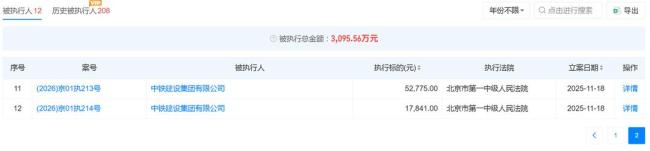根据天眼查显示,中铁建设集团有限公司曾用名北京中铁建设有限公司,成立于1979年,法定代表人为梅洪亮,注册资本350297.09万元。2025年以来,该公司已被12次列为被执行人,被执行总金额超3000万元。