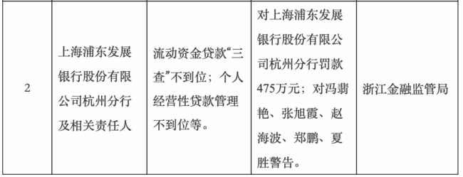 就在今年1月21日,浙江金融监管局对浦发银行杭州分行及相关责任人罚款475万元,并对多名员工予以警告。