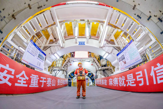 针对复杂的施工环境和地质条件,项目团队为隧道量身设计“启航号”盾构机,盾构机长达161米,其中盾构机刀盘直径达15.06米,总重约358吨,由一个中心块、六个主刀臂、六个辅刀臂组成。同时,依托“创新工作室”积极开展技术创新,提高排渣顺畅度,提升废浆处理能力,保障掘进效率。