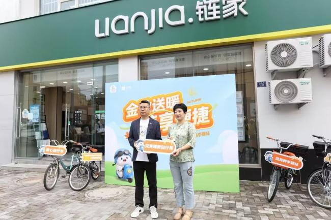 9月26日,贝壳骑手驿站“暖心自行车”服务落地。贝壳找房青岛城市总经理、青岛贝壳骑手驿站公益项目发起人赵阳与双山社区党委书记杨露璐共同完成了车辆交接,5辆印有"驿路同行贝暖岛城"的自行车配备打气筒和维修工具包,正式投入使用。“以前步行送最后一栋楼要10多分钟,现在骑车3-5分钟就到!”骑手庄师傅试骑后点赞。