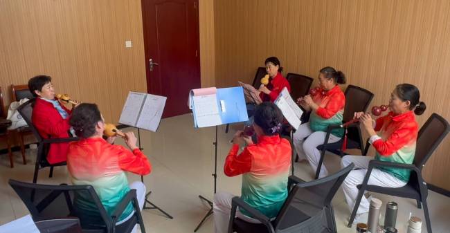 同一时间,早教课隔壁的活动室内,几位老人正专注地吹奏着葫芦丝。社区居民张洪玉介绍:“我们团队一开始人很少,文化书院成立后,队伍越来越壮大,最多时达到五六十人。”