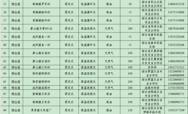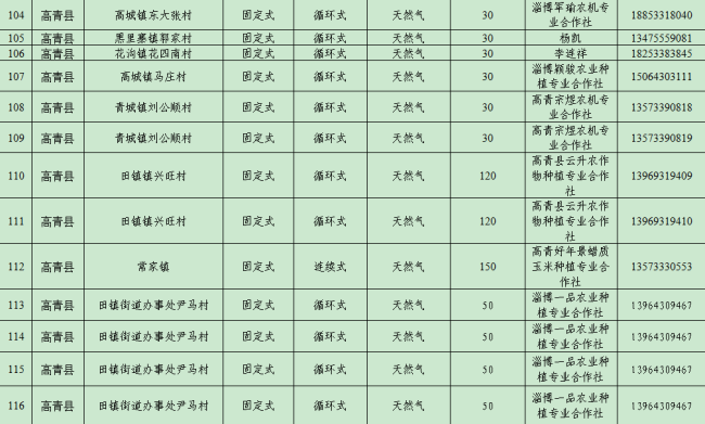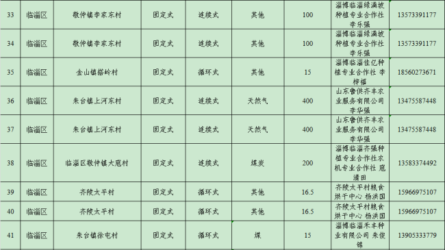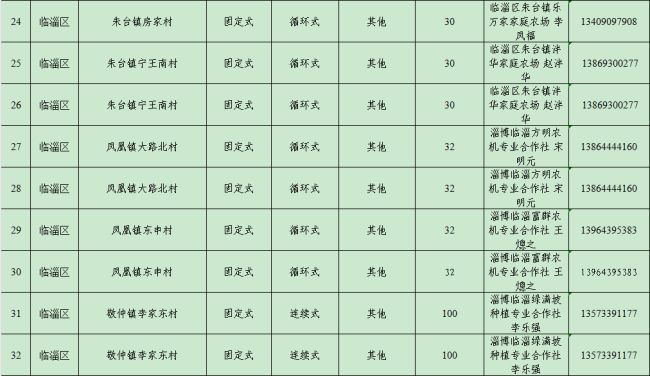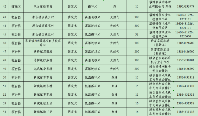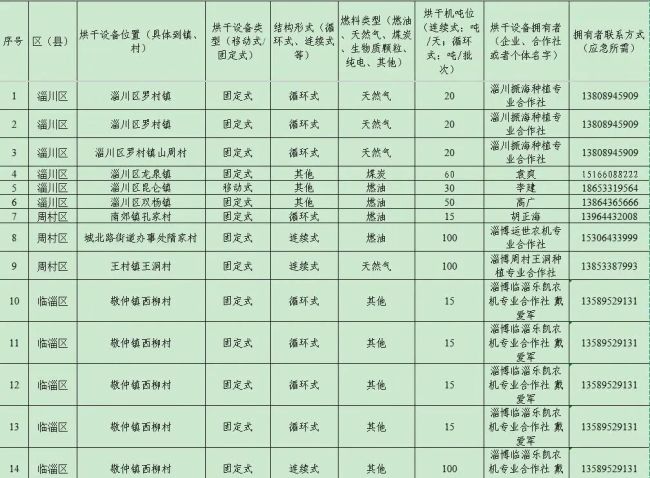 附:淄博市粮食烘干中心和履带式玉米收获机机主联系表