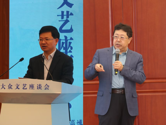 《中国艺术报》副总编辑彭宽,抖音集团政务合作副总经理、区域执行总裁李冉,山东卓格影视传媒有限公司总经理许宁,青岛古麦嘉禾科技有限公司总经理于爱山,番茄小说主编林潍洲,“外卖诗人”王计兵,网络作家杀虫队队员,素人写作者王晚,短视频创作者王飞,旅行领域自媒体博主“泰山娟姐”等10位新大众文艺创作者和有关机构负责人聚焦创作实践和工作实际,分享了创作经验与认识体会。