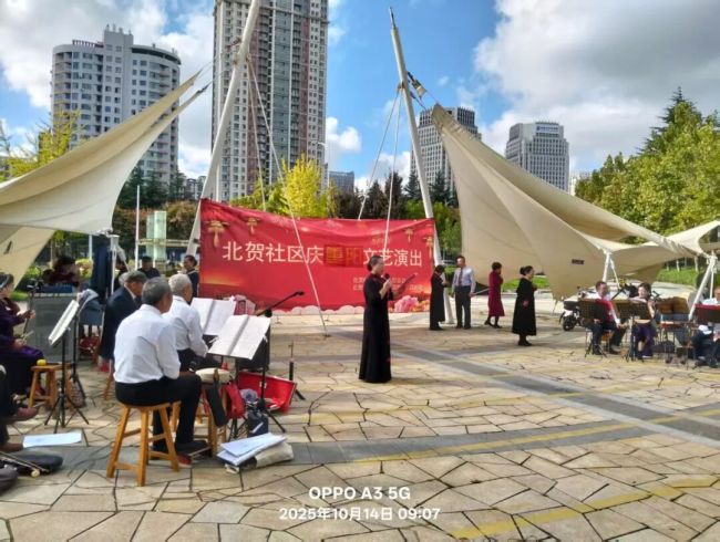 岁岁重阳,今又重阳。近日,烟台莱山区滨海路街道北贺社区文化广场戏韵悠扬、掌声不断,“庆重阳·敬老情”文艺汇演在此倾情上演。活动由北贺社区主办,吸引辖区百名居民共赴一场“家门口”的戏曲盛宴,共叙敬老深情。