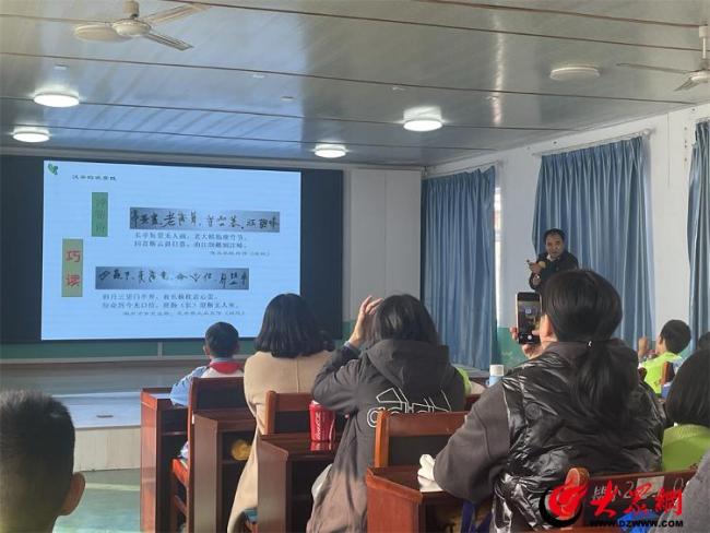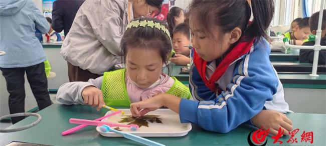 下午的活动在张家楼小学校园内继续开展。孩子们参观“党建+长征主题文化体育长廊”,参与红色体育游戏,体验叶脉画社团的创作过程,并认真聆听青岛大学文学与新闻传播学院副教授张轶西老师的专题讲座《神秘汉字》,进一步感受中华文字与文化的魅力。