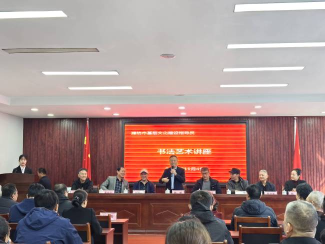 书法艺术讲座环节,中国书法家协会会员、潍坊市书法家协会顾问谭伟,潍城区书法家协会主席赵洪祥等名家,用“群众听得明白的语言”讲解着笔锋的转折与结构的疏密。