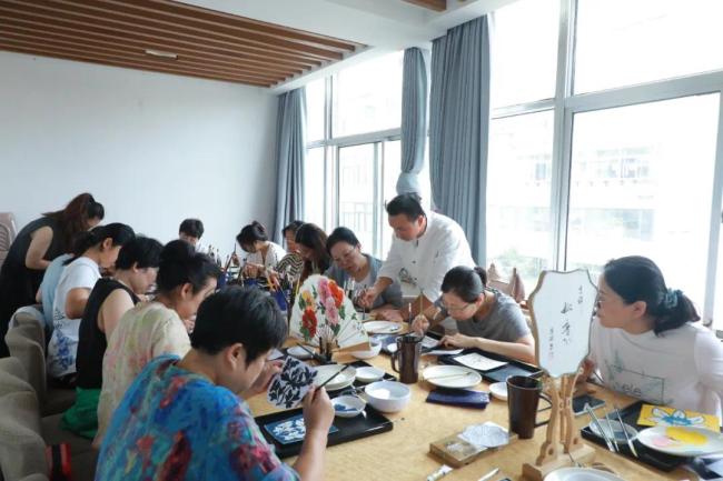廖夫人非遗手绘及手工技艺项目中,非遗手绘体验搬进东方古韵感十足的樱花制衣廖夫人定制美学馆,“非遗课堂”摆脱了纸上谈兵的局限。参与者置身琳琅满目的面料墙、精致的成品展示区,直观感受服饰美学的魅力,和时尚“对话”。项目围绕古典牡丹纹样手绘体验、服装面料色彩与图腾文化、手工布艺贴画体验、丝绵画体验等主题开展系列活动,让参与者在典雅的环境中,驻足欣赏新中式服饰、胶东婚服,对服饰美学有了更深的认同。“希望通过这样的体验活动,为参与者心中播下追求美和艺术的种子,让传统文化成为他们生活里的‘小确幸’。”项目负责人、威海胶东婚服非遗传承人王开涛说。