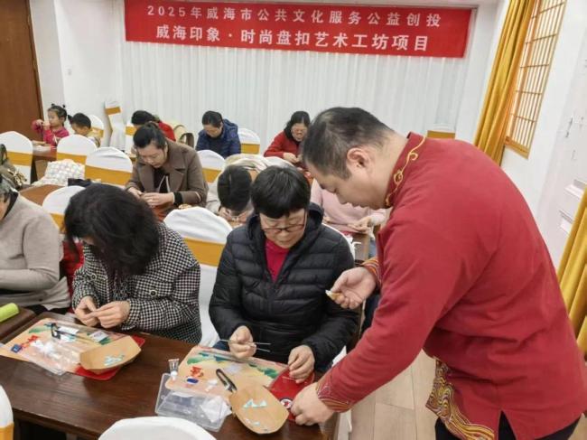 “威海印象·时尚盘扣艺术工坊”公共文化服务公益创投项目,则选在静海听风文化艺术空间常态化开展。充满中式美学的环境,让社区居民与中华服饰文化实现“深入对话”。每次手工制作前,大家会在组织者的引导下参观新中式服饰展区、中华服饰文化历史展板长廊。“图文并茂的讲解,加上新中式服装等实物的呈现,让人对服饰演变有了全新认识。”参加活动的社区居民感慨道。项目负责人李响介绍,把活动搬进这里,是希望大家既能体验盘扣非遗手作,还可以了解中华服饰从先秦深衣到明清旗袍的演变历程,了解盘扣技艺所根植的深厚文化土壤。