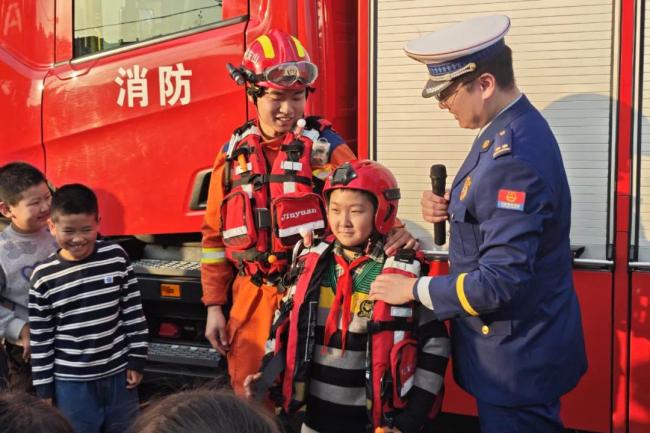 “这边的学生留守儿童居多,家里只留下了孩子和老人,稍有不慎,极易引发各类火灾安全事故。针对此情况,我们将消防车开进学校,为师生们送去消防安全知识,让孩子们近距离接触消防,感受消防,学习消防。”莱山区初家消防救援站副站长纪俊宁表示。