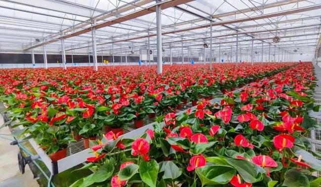 “商河花卉是享受温泉的花卉!”在温泉花卉谷,负责人骄傲地介绍。利用独特的地热资源供暖,相比传统方式,每平方米温室每年可节约成本数十元。温暖如春的大棚内,蝴蝶兰、红掌等娇艳欲滴。历经十余年发展,商河温泉花卉从无到有、从有到强,设施面积超150万平方米,高档盆花年产能达5000万盆,销售额占济南市的89.3%,先后5次被央视专题报道,并实现了全市首单蝴蝶兰鲜切花出口。在商河,一朵花催生了一个年产值巨大的“美丽经济”产业集群。