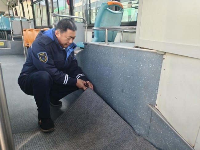 948路串联多个居民社区且途经集市,老年乘客超过半数。驾驶员张晓峰留意到老年乘客上下车偏慢、车厢易滑、座椅偏硬等问题,通过在车厢关键区域铺设高摩擦防滑地垫,更换保暖柔软的座椅垫,逐一检修扶手、爱心专座标识等设施,让线路既安全又暖心。“以前雨雪天上车总担心脚下打滑,坐久了腰也酸。现在铺了防滑地垫,座椅也变软了,真是太贴心了!”经常乘坐948路赶集的李阿姨竖起大拇指。